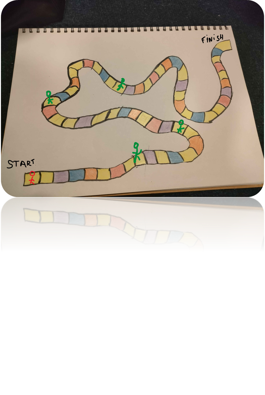 A Mario Party 10-like board game, where players roll dice to move, going through tiles that cause negative effects, while one player plays as a monster to kill the others.